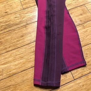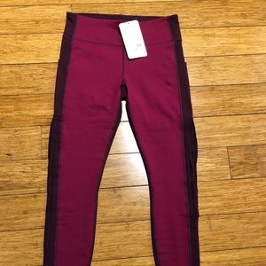 Two-tone performance 7/8 leggings with mesh panels on the sides for style and breathability. High waisted for comfort.