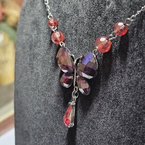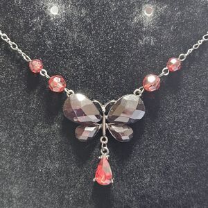 **Sale** 1928 Black Red Y Style Butterfly Necklace 15.5 To 18.5"