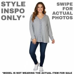 [Sale: 2 for $20!] Bill Blass Gray Ruffled V-Neck Top 2X Cotton Blend 0246