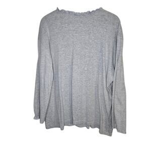 Gray, Heather, Ruffle Trim, V Neck, Top, Blouse, Long Sleeve, Lightweight, Soft, Stretch, Comfortable, Feminine, Casual, Office, Workwear, Spring, Fall, Layering, Versatile, Chic, Modern, Minimalist, Classic, Evening, Holiday, Ann Taylor, Talbots, J Jill, Loft, Charter Club, Banana Republic, Mature, Misses, Cute, Subtle Detail, Capsule Wardrobe, All Seasons, Wardrobe Essential, Everyday, Modest, Travel, Gift, Stylish, Relaxed Fit