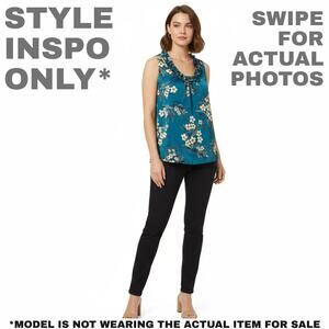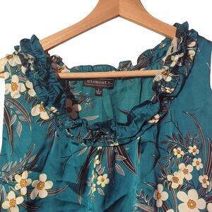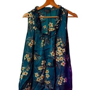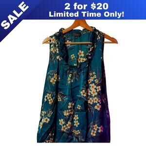 Teal, Blue, Floral, Flower Print, Ruffle Neckline, Sleeveless, Blouse, Tank Top, Lightweight, Flowy, Feminine, Boho, Chic, Soft, Spring, Summer, Resort, Vacation, Date Night, Business Casual, Workwear, Layering, Statement Top, Modern, Trendy, Anthropologie, Loft, Ann Taylor, J Crew, Zara, Stylish, Vibrant, Unique, Polished, Versatile, Office, Party, Everyday, Cute, Girly, Gift, Essential, Wardrobe Staple, Elegant, Boutique, Dressy Casual
