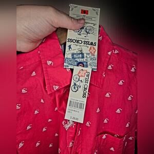 Swiss Cross Shirt, Original Trailblazer Shirt, Red Sailboat Shirt, Nautical Print Button Down, Men’s Cotton Shirt, Casual Summer Shirt, Preppy Style Shirt, Resort Wear Shirt, Vacation Shirt, Sailing Shirt, Yacht Club Shirt, Short Sleeve Button Down, Slim Fit Shirt, Poshmark Menswear, Zara Men Shirt, J Crew Men Shirt, Banana Republic Shirt, H&M Mens Shirt, Tommy Hilfiger Shirt, Ralph Lauren Nautical Shirt, Vineyard Vines Shirt, Express Men Shirt, Stylish Casual Shirt, Summer Beach Shirt