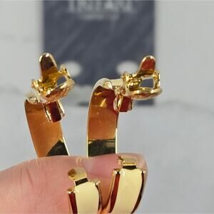 [Sale: 2 for $20!] NWT Trifari Two-Tone Gold & White Clip-On Hoops