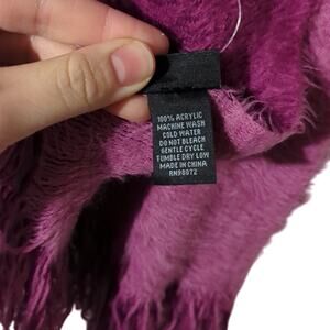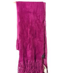 New, Cejon scarf. This scarf is two sided with a darker pink on one side and a lighter pink on the other. it has fringe on the ends. made of 100% acrylic. Machine wash cold, tumble dry low. Made in China.
