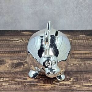 Silver, Metallic, Chrome, Shiny, Polished, Piggy, Piggy Bank, Coin Bank, Savings Bank, Money Box, Vintage, Retro, Antique Inspired, Farmhouse, Cottagecore, Nursery Decor, Kids Room, Baby Shower Gift, Newborn Keepsake, Christening Gift, Graduation, Wedding Present, Housewarming, Office Desk, Collectible, Figurine, Cute Animal, Home Accent, Tabletop Display, Classic Style, Timeless, Durable Metal, Solid Construction, Slot Top, Rubber Stopper, Reed And Barton, Gorham, Lenox, Vera Wang, Nambe, Tiffany, Pottery Barn Kids, Kate Spade, Mikasa, Jewelry Box Alternative
