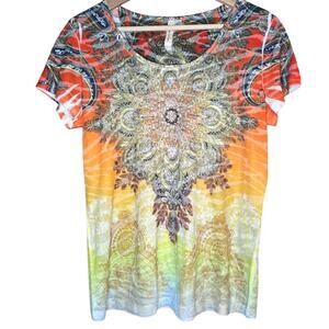[Sale: 2 for $20!] Susan Lawrence Tie-Dye Floral T-Shirt Size M 0103