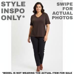Chocolate, Cocoa, Mocha, Brown, Earth Tone, V Neck, Short Sleeve, Modern, Minimalist, Classic, Essential, Relaxed Fit, Solid, Soft, Stretch, Pullover, Comfortable, Versatile, Everyday, Casual, Workwear, Office, Business, Layering, Capsule Wardrobe, Chic, Sophisticated, Understated, Sleek, Timeless, Unisex, Urban, Machine Washable, Easy Care, Petite, Plus Size, Evening, Travel, Summer, Spring, Clean, Contemporary, J Jill, Talbots, Banana Republic, Zara, Loft, Ann Taylor, Stylish, Must Have, Wardrobe Staple