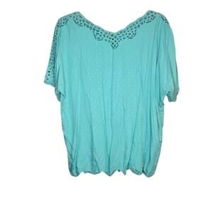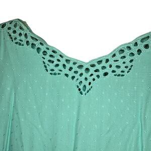 Dolman-style top with sweetheart neckline and exquisite eyelet detail
