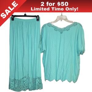 [Sale: 2 for $50!] BALI EMERALD DESIGN MINT SET EYELET EMBROIDERY ONE SIZE 0279