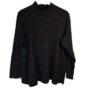 Classic CLIO mock neck long sleeve top in versatile black. Made in USA with premium cotton blend fabric that offers just the right amount of stretch for all-day comfort. Size tag not visible, but measurements provided below.