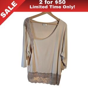 [Sale: 2 for $50!] CLIO II Cream Lace Trim Top Size 2X Feminine Boho 0339