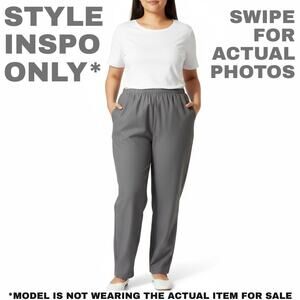 Gray, Charcoal, Graphite, Elastic Waist, Pull On, Comfortable Fit, Lightweight, Classic Style, Casual Pants, Everyday, Office Wear, Business Casual, Plus Size, Misses, Stretch Waist, Straight Leg, Career, Travel, Machine Washable, Easy Care, Alfred Dunner, Talbots, Chicos, J Jill, Liz Claiborne, Minimalist, Versatile, Timeless, Durable, Professional, Capsule Wardrobe, Soft Fabric, Lounge, Workwear, Neutral, Modern