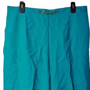 Teal, Blue Green, Turquoise, Slim Leg, Stretch Waist, High Rise, Gold Chain Detail, Decorative Waist, Dress Pants, Slacks, Workwear, Career, Office Style, Elegant, Classic, Statement Detail, Spring, Summer, Lightweight, Misses, Plus Size, Women's Apparel, Comfortable, Pull On, Modern, Stylish, Talbots, Chicos, J Jill, Liz Claiborne