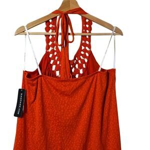 [Sale: 2 for $50!] NWT Rampage Red/Orange Polka Dot Cutout Halter Top Large 0110