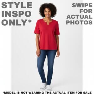 Red, Embroidered, Short Sleeve, Shirt, Top, Blouse, Scoop Neck, Split Neck, Floral Detail, Comfortable, Soft, Casual, Classic, Lightweight, Breathable, Summer, Spring, Plus Size, Misses, Everyday, Workwear, Travel, Solid, Pull On, Lauren Ralph Lauren, Charter Club, Liz Claiborne, Talbots, J Jill, Jumper, Womenswear, Easy Care, Wardrobe Staple, Essential, Versatile, Feminine, Timeless, All Seasons, Layering