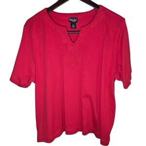[Sale: 2 for $50!] Rafaella Woman Red Embroidered Short-Sleeve Shirt 2X 0240