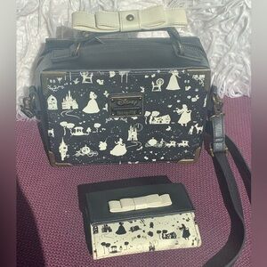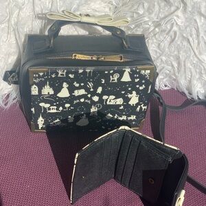 Sale!🔥 2pc Loungefly Disney Princesses bag Black & White, Box Crossbody & WALLET