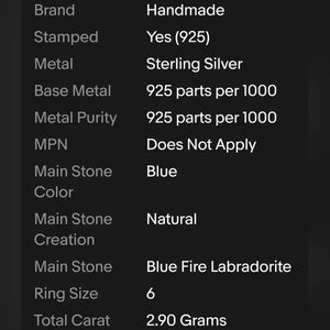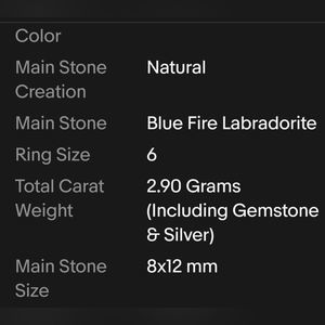 Sale 3ct Natural Blue Fire Labradorite Madagascar 925 Sterling Silver Ring s.6