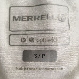 Merrell Opti-Wick top, size small. Gently used condition but in good shape. White color. Has 3% spandex. Clean no stains or pics.