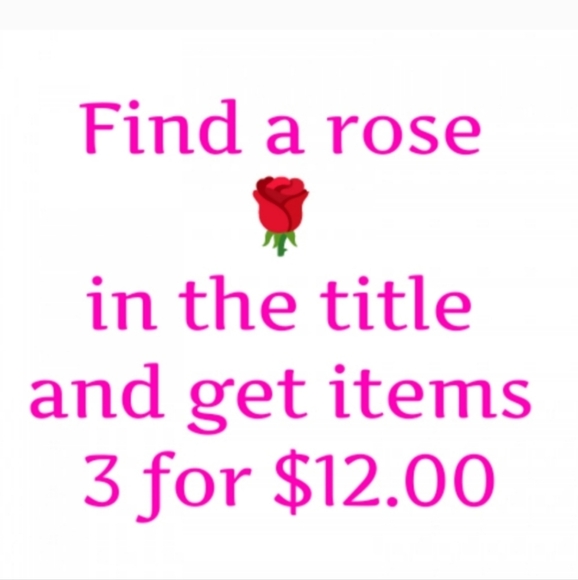 Get items for 3/$12 BUT you must add 3 listings to a bundle. It doesn't have to be the same item. You can mix or match items especially if we have only 1 available as long as the title has a rose ๐น in it. If you don't add 3 items to a bundle you'll receive 1 item no ifs ands or buts.