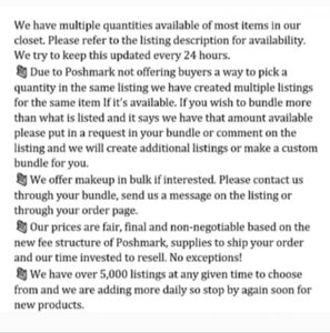 5) Once you're done shopping you may send us an offer for the amount of the sale. Please know we do not entertain low ball offers. This is a full time job and not a yard sale. Please kindly move along.