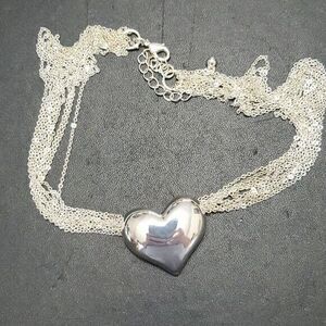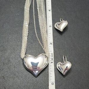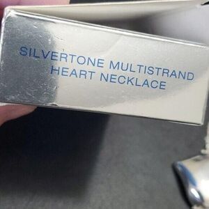 Gorgeous silver colored multistrand heart necklace includes matching earrings. IOB