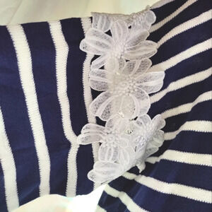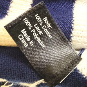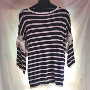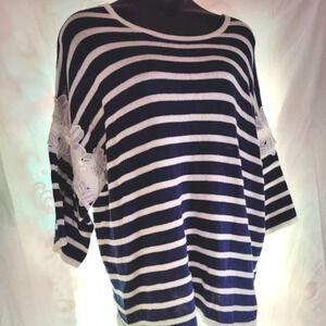 Adorable Lane Bryant Sweater with stripes, lace, scooped neckline, in 100% cotton.