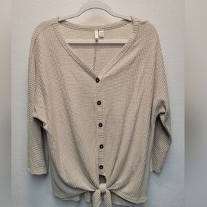EST 1948 Women's Size XL 3/4 Sleeve Waffle Knit Button Front Top With Knotted Front, Soft, Comfy Material.