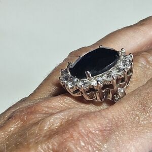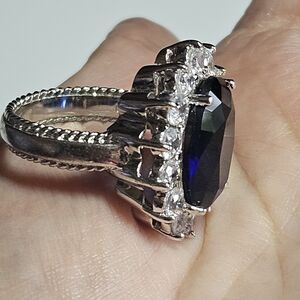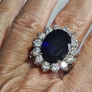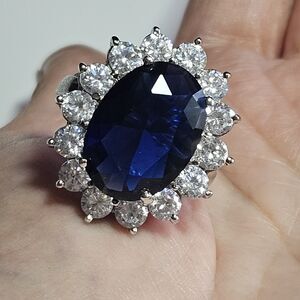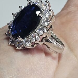**Sale** Kenneth Jay Lane Princess Diana Sapphire & CZ ring Size 9 Silver Tone
