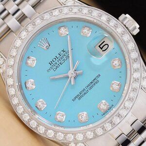Sale! Ladies Rolex Midsize 31mm White Gold Blue Diamond Watch