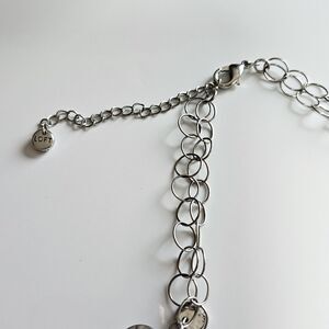 The Loft Silver Tone Layered Circle Necklace is a stylish piece of jewelry that features a layered design with a circle accents. The necklace has a length of 21 to 24 inches, providing a versatile and on-trend accessory for various outfits. Made by the brand LOFT, this necklace exudes a modern and chic style that is perfect for adding a touch of sophistication to any look.