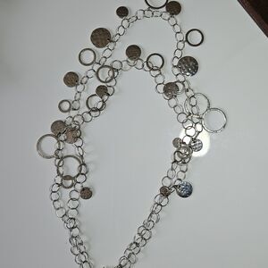 **Sale** Loft Silver Tone Layered Circle Necklace 21 To 24"