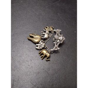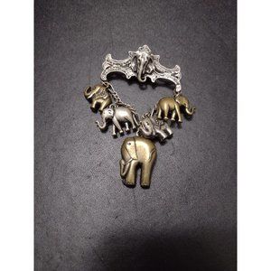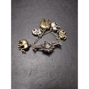 Adorable brooch looks handmade. It is a chain of elephants made from a button cover. Brooch is very lightweight.