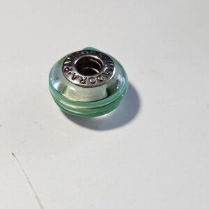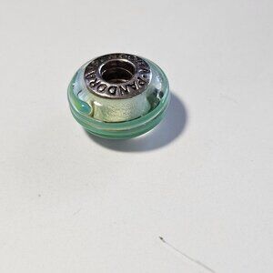 Pretty sterling silver charm has a greenish, yellow, bluish stripe. Marked Pandora 925 ALE.