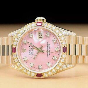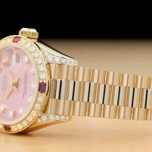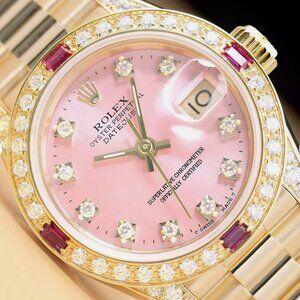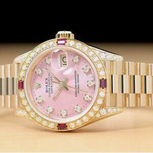 Sale! Rolex Ladies President Diamond 18k Gold Ruby Watch