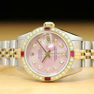 Sale! Rolex Ruby Diamond Gold Date Ladies Watch