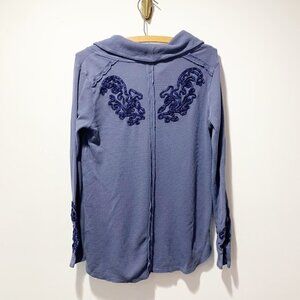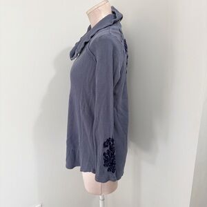 Soft Surroundings Wings Embroidered Funnel Neck Waffle Knit Top Women’s Size Small