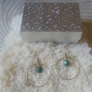 Handmade by myself. The Czech glass is antique and has splatters of gold on them. I used jewelry gold toned wire and gold toned earring findings. They look beautiful with a dress or even jeans and boots or heels. 10% of my sales are given to charity. And a gift box is included with the earrings.