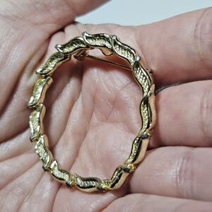 *Sale* Vintage Gold Tone Gerrys Leaf Circle Round Pin Brooch Textured Wreath