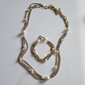 *Sale* Vtg 1970s Emmons Scenario Faux Pearl Bead Gold Tone Necklace Bracelet