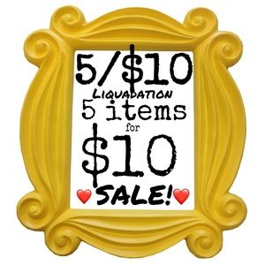 Closet clear out liquidation sale starting today 8/24 will end when items are gone please look for 5/$10 ❤️ in title or items $5 and under included! Add to bundle for a deal with other items as well! Includes men’s women’s children’s kids youth shirts pants shorts swimsuits shoes etc. Will be taking offers and trying to clean out my closet for cheap! Clearance cheap 5 items for $10 or 10 items for $20 .... 15 items for $30!!