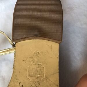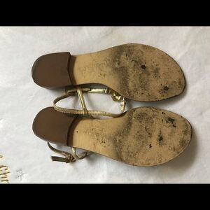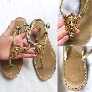 Gold lion charm, super cute on. Leather sole, gold PU straps.