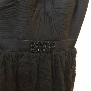 Beautiful only worn once Black dress size 6. Length is 30.5 inches and laying flat waist is 13.5 inches.