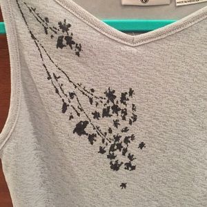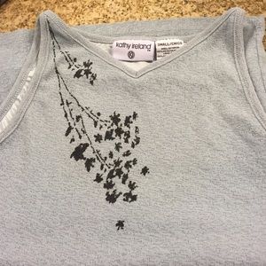 Baby blue Kathy Ireland sleeveless shirt with embroidered black flowers. Size small.
