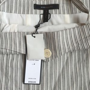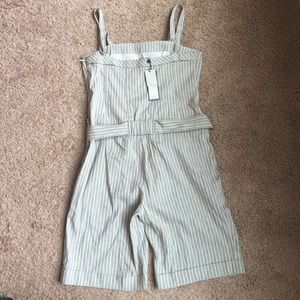 Super cute BCBG romper with attached ribbon and pockets. Never worn - NWT - it's just too loose on me. Side zipper and adjustable straps.