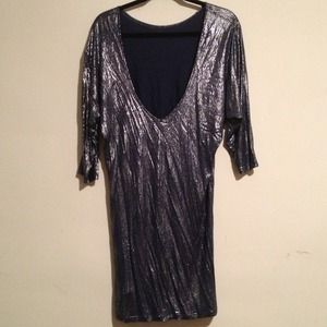 Stunning Zara Collection mini dress!!! Worn once! Has a dark blue and silver brushed look with a high neck in the front and plunging back. Sleeves reach elbows and are loose and tight towards the elbow.⬜️🔲⬜️ No Trades, No Paypal. Discounts offered on bundles◻️🔲◻️
