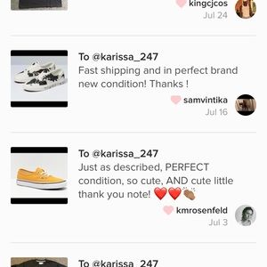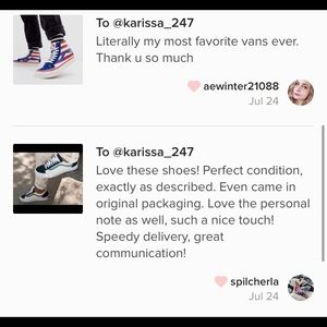 hey there, I bought a pair of your orange Vans at end of July I believe. The package was held up in Wisconsin with no signs of movement for over a week. Then the mailman delivered to my door the other day in the most beat up , broken box I've ever seen. Guess what? There was a Vans bag and a nicely written thank you note, but no shoes! I had already opened up a case with Poshmark as to investigate why it was sitting in Wisconsin for so long, but now there's investigation as to why no shoes.