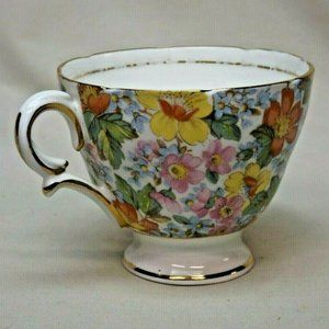 We are offering this Salisbury Floral footed tea cup and saucer fine bone china for sale.