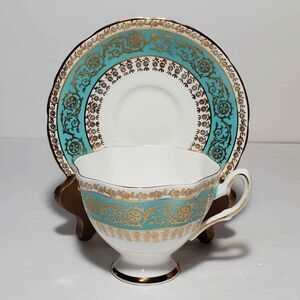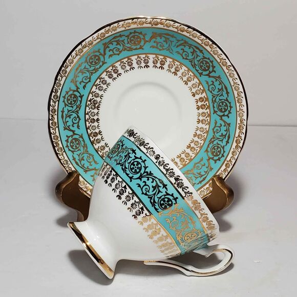 Salisbury Teacup and Saucer Blue Gold Vintage