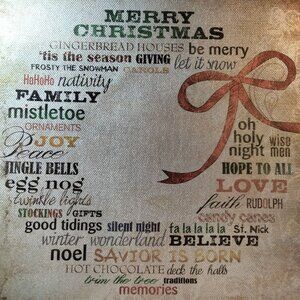 Brighten the holiday season with this charming Christmas word art canvas. Featuring festive phrases a